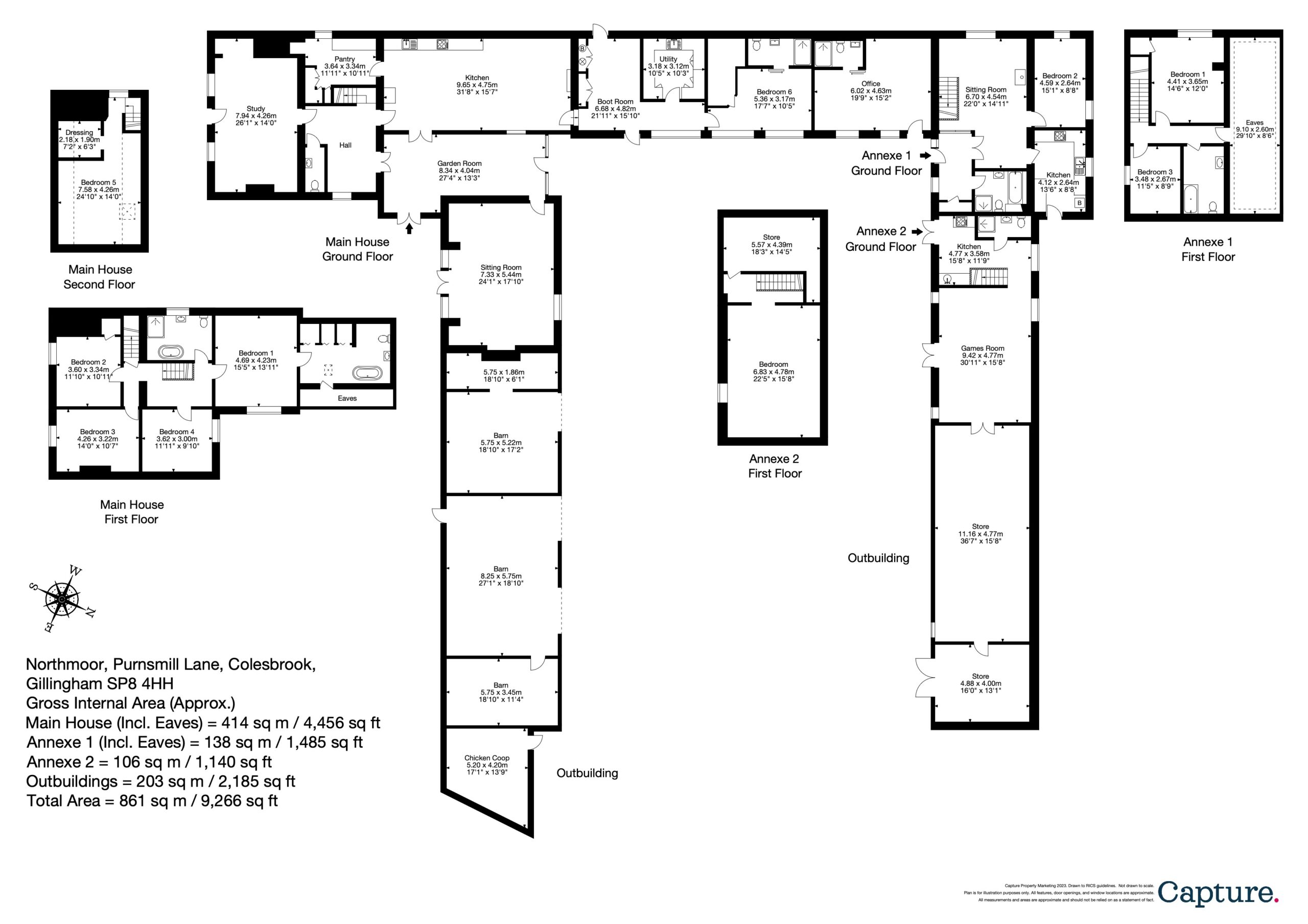 There are two separate annexes; annexe one has a good-sized sitting room with kitchen, three bedrooms and two bathrooms. Annexe two is currently used as a great games room with kitchen and a sleepover room above.