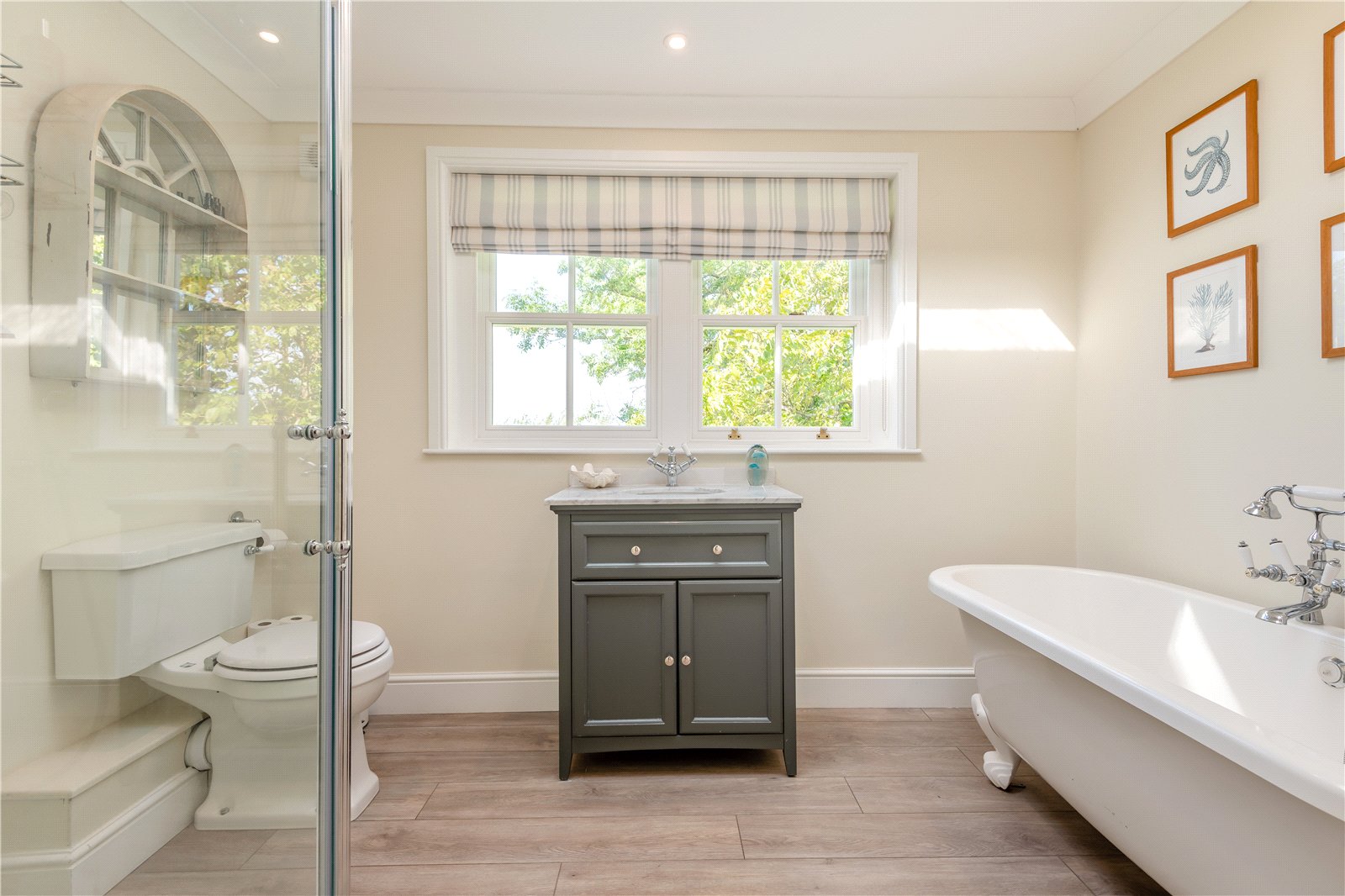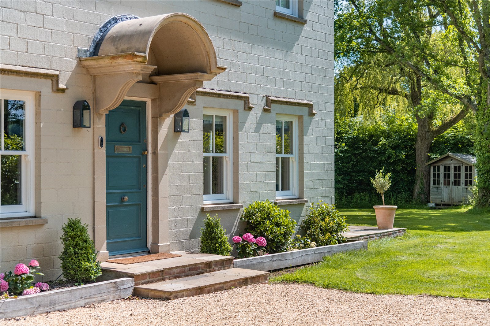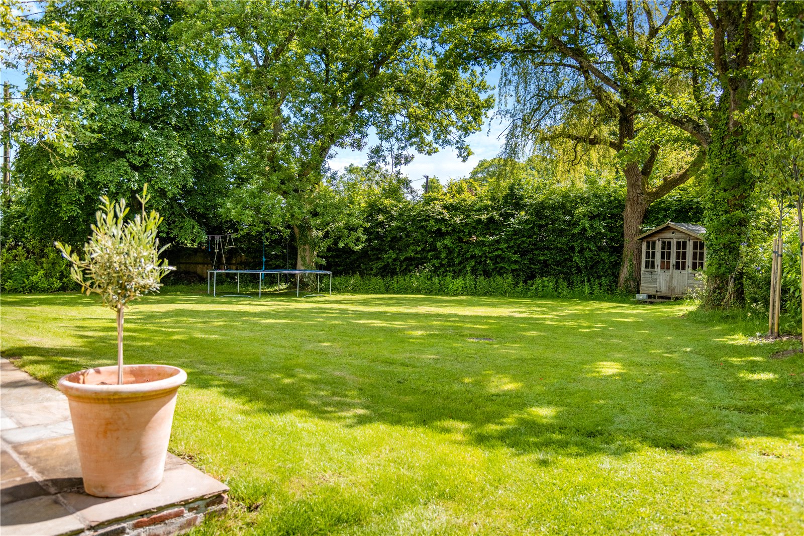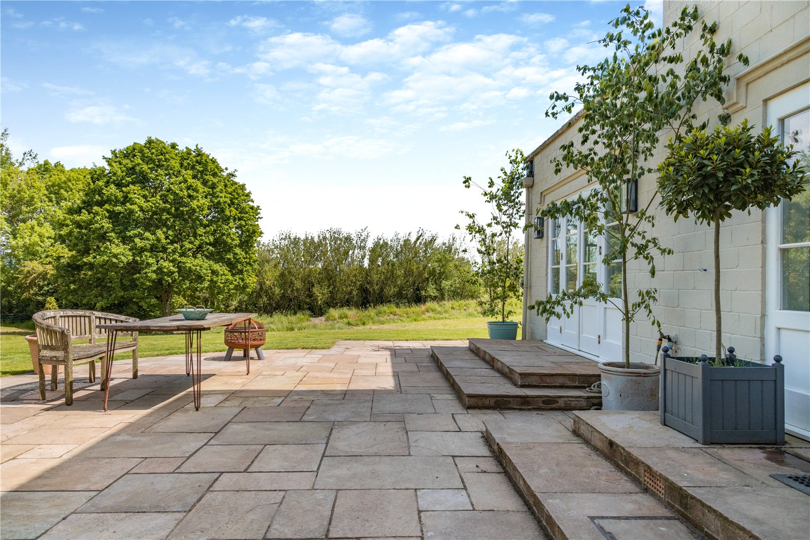 The house is approached over a gravelled driveway, providing ample parking for several cars. The garden surrounding the property is mainly laid to lawn with mature trees on the boundary. The large, paved terrace is ideal for al fresco dining and entertaining.
