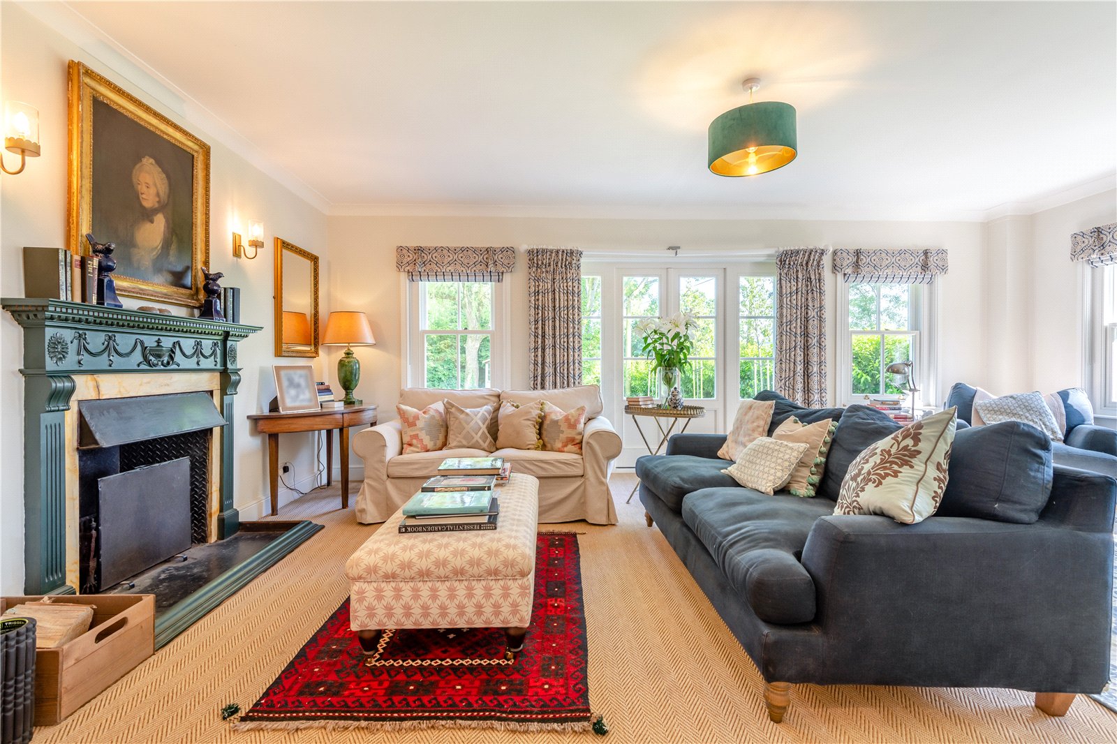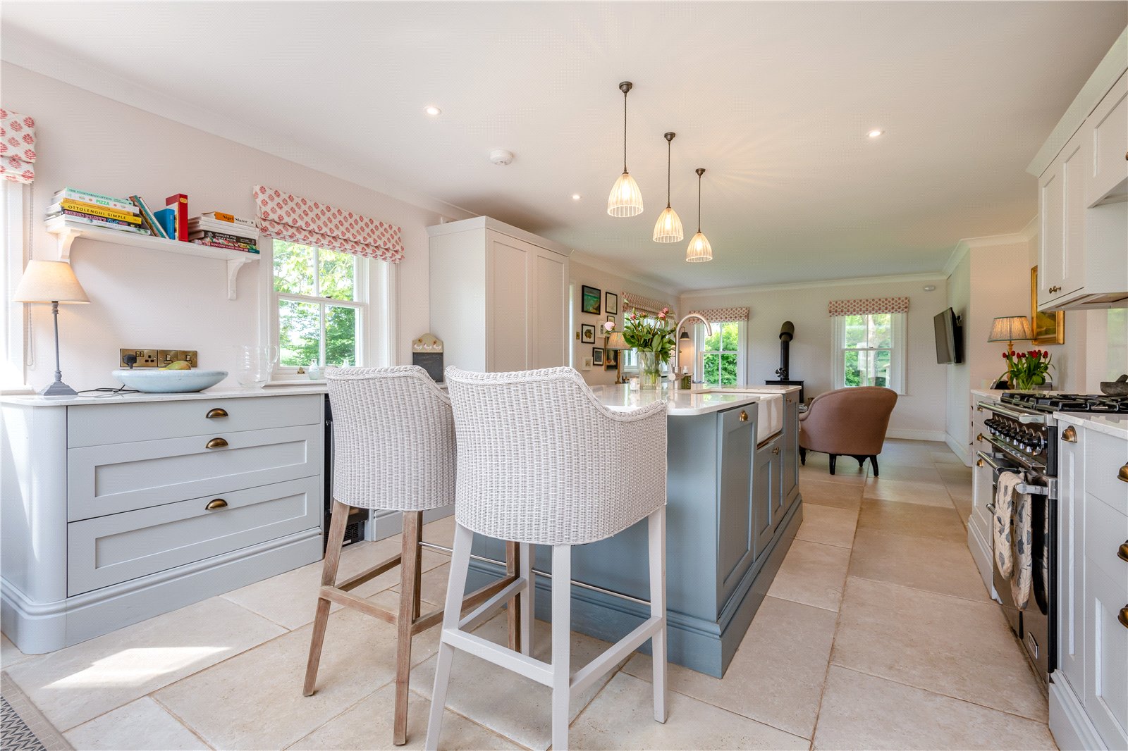 Langlands is a beautifully presented double-fronted family home extending to approximately 2,491 sq ft set within established gardens and grounds. Built in the 1970s with painted external walls and a slate tile roof. Configured to provide an ideal family and entertaining space featuring sash windows throughout. The accommodation is comprised of a large sitting room with a feature fireplace, a dining room and an extensive open plan kitchen/breakfast/ family sitting room. The kitchen has a range of wall and base units including a large central island with Belfast sink and breakfast bar. Double French doors open out from the kitchen to the terrace whilst the family sitting area benefits from a wood burner. A useful boot room/utility is next to the kitchen with French doors opening out on to the terrace and garden beyond. Upstairs the main bedroom has a dressing room and an ensuite bathroom. There are a further three bedrooms, one with an ensuite shower room and a family bathroom.