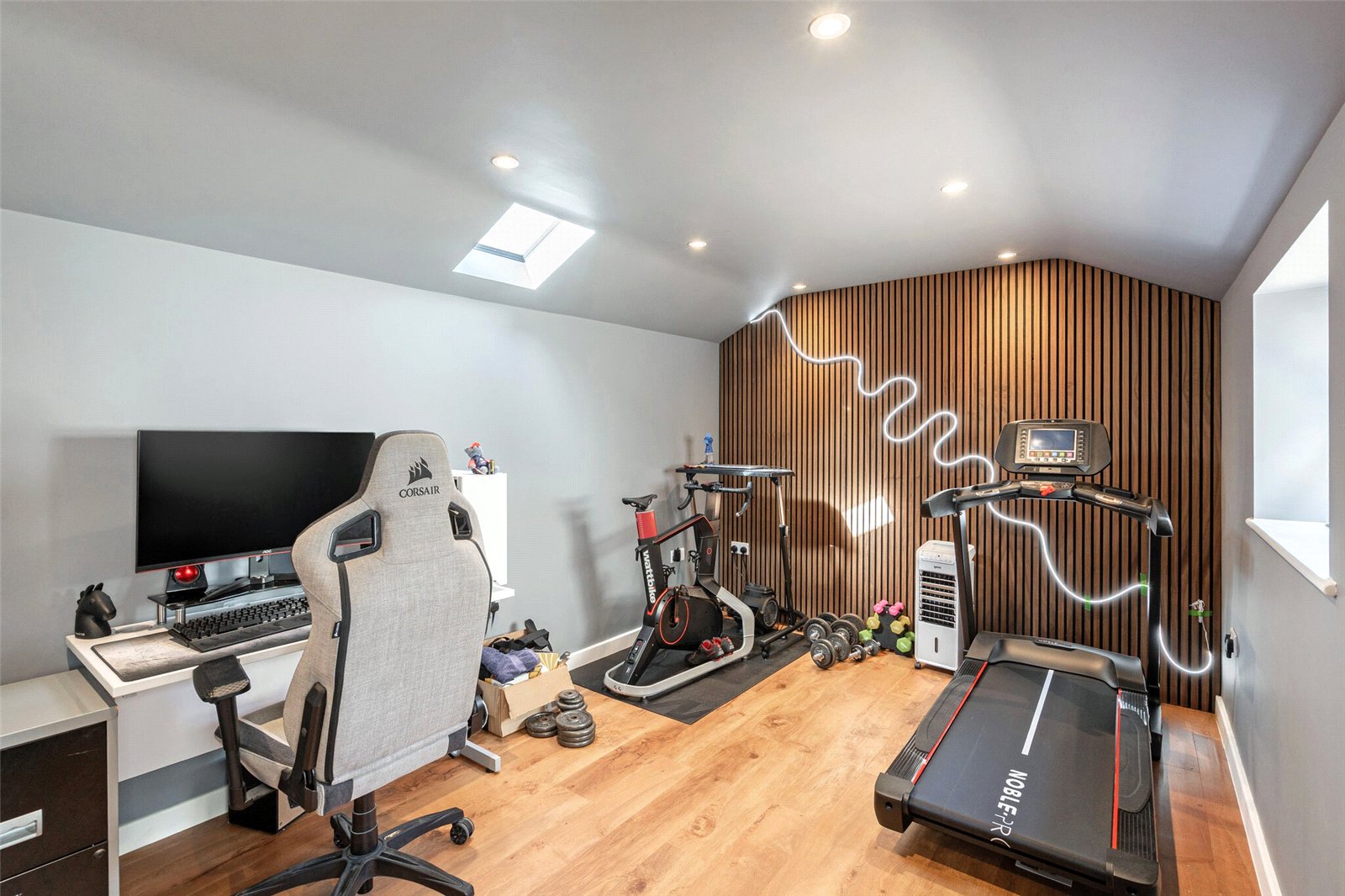 What was originally an outbuilding/workshop is now a stylishly designed office/hobbies room with an adjoining storage area and a boiler room.