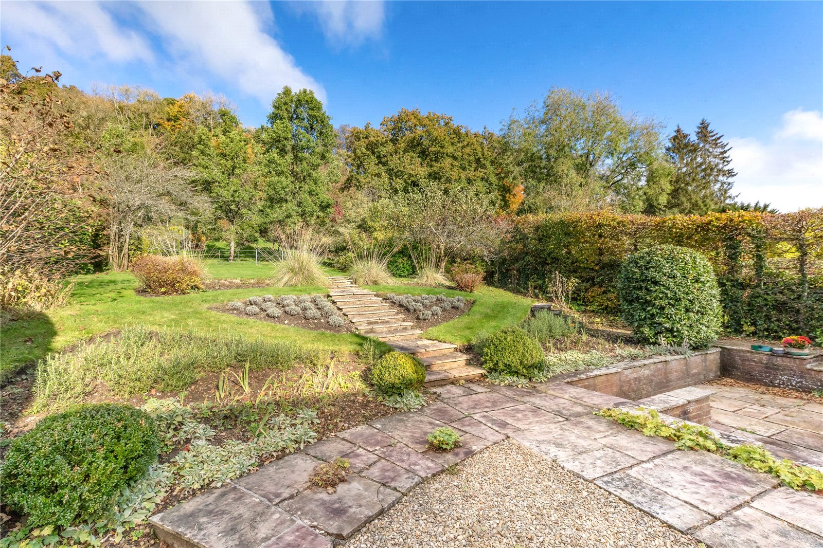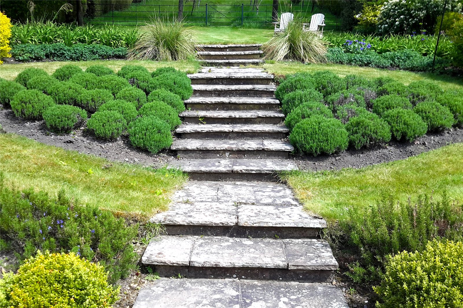 One of the joys of this property is the large garden which hold a gradual southerly slope and backs onto woodland at the rear. It comprises a paved and graveled area set on two levels, and beautifully planted terracing which climbs a slight incline away from the house. Dotted with perennial shrubs and flanked by lavender beds, the wide steps lead to a lawn, at the top of which is estate fencing and a gate opening to a most attractive orchard.