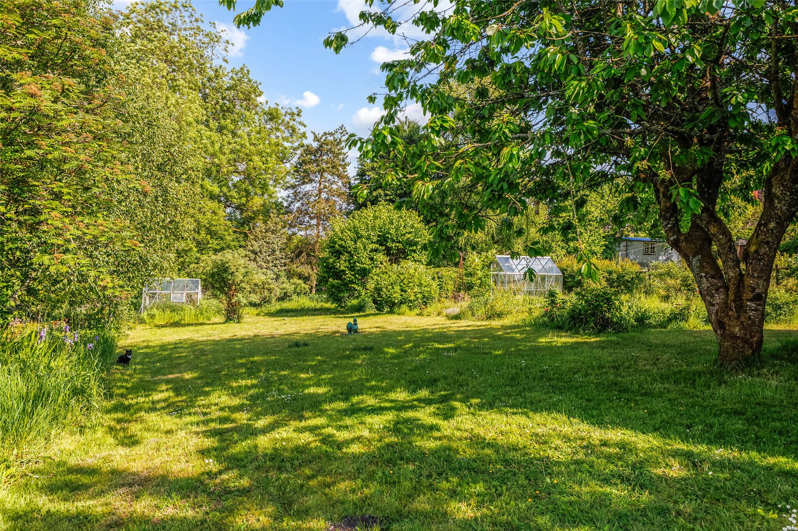 The particularly large garden amounting to just over a third of an acre is a special feature of the property with its field side setting and stunning countryside views. It has spacious areas of lawn, flower, shrub and rose beds, seating areas, a wild garden, two greenhouses, a variety of ornamental, conifer and deciduous trees and a wooden store.