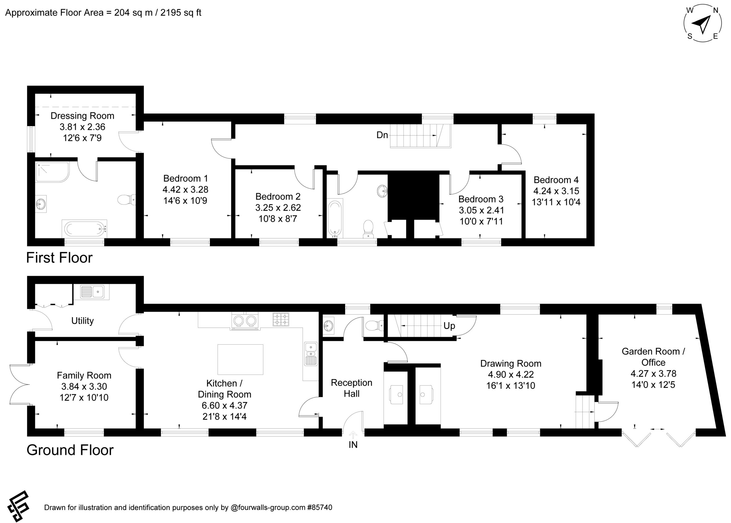 Upstairs is an excellent master bedroom suite with a separate dressing room and an en-suite bathroom with a double ended bath and a walk-in shower. The are three further bedrooms and well-appointed family bathroom.