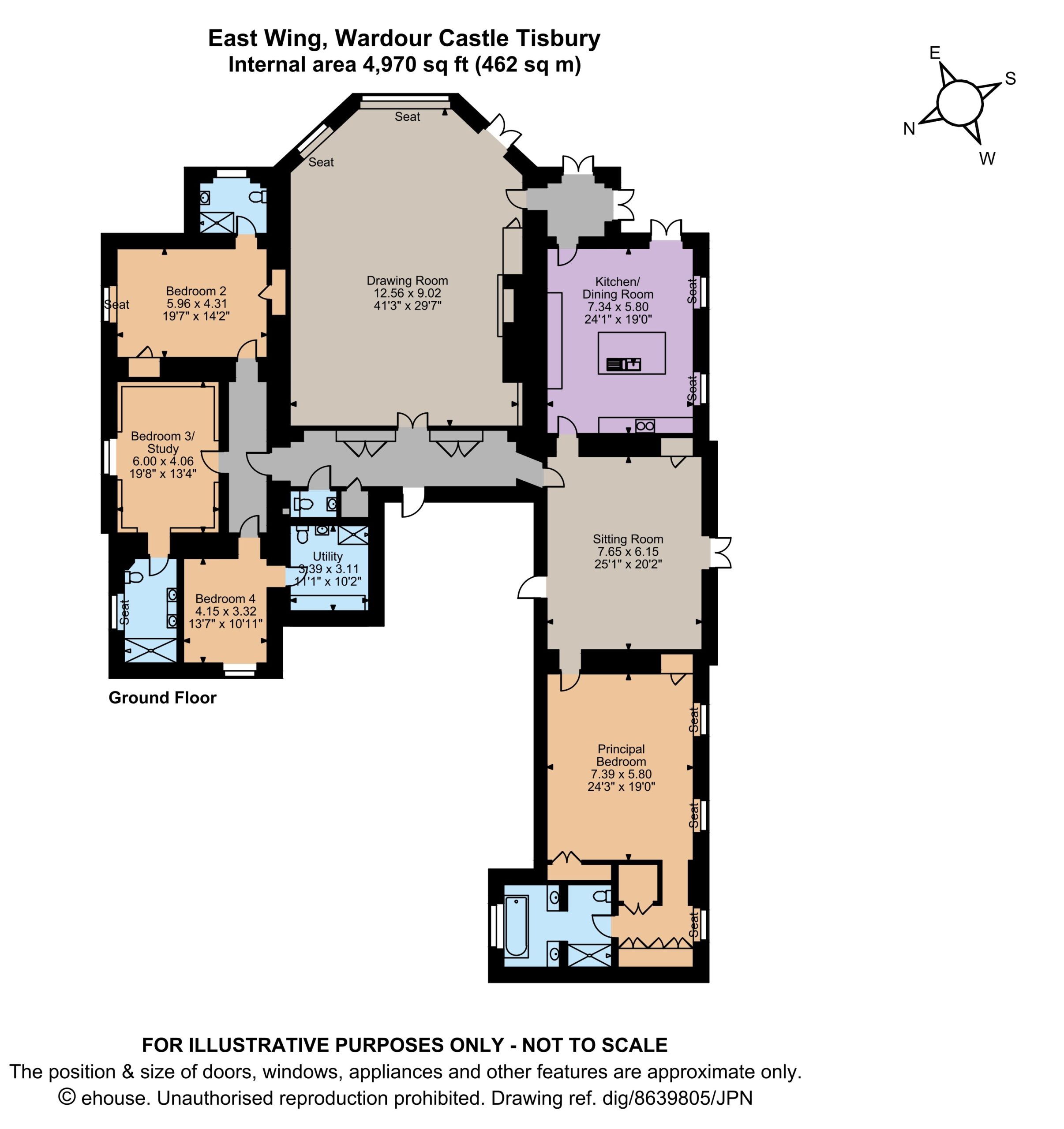 Occupying the majority of the ground floor of the east wing, and adaptable in its accommodation, Apartment 9 is an extensive apartment with beautifully proportioned rooms, plenty of light from long sash windows, and a wonderful